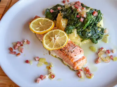 Salmon fillet grilled to perfection served with our signature salsa